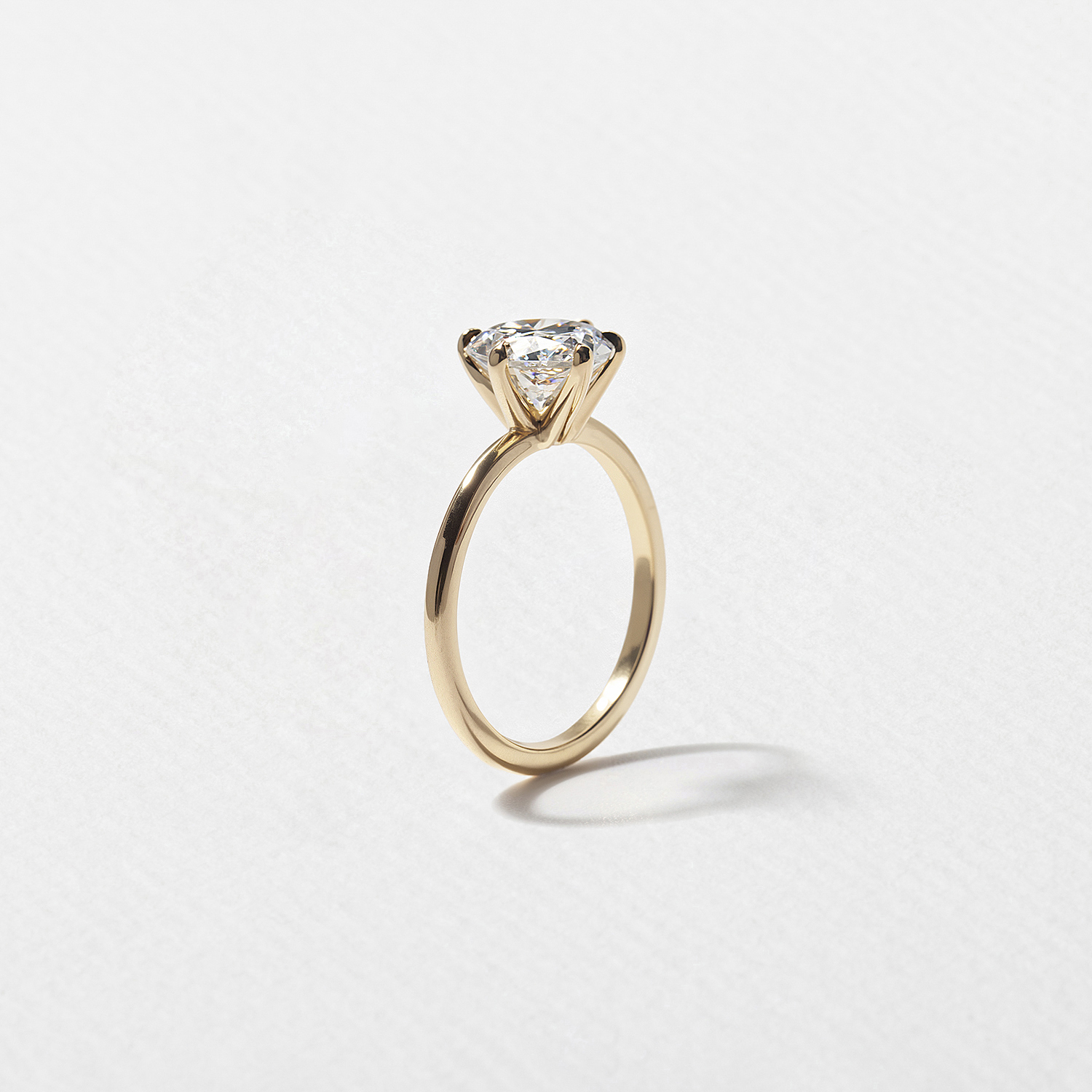 Shown here with a 2.08ct E/VVS2 lab-grown pear-cut diamond, set into 14k yellow gold, sized to order.