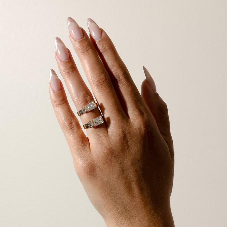 In search of the life of the party? Look no further than Henri Grand. Featuring an emerald-cut diamond complemented with a bezel-set round, she captures all the charm of Henri—and then some. A true friend through both the lowest lows and the highest highs, Henri Grand is always ready to go above and beyond.