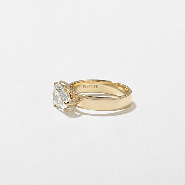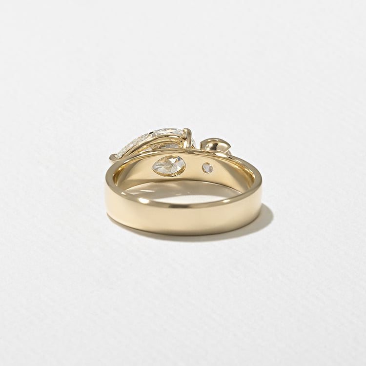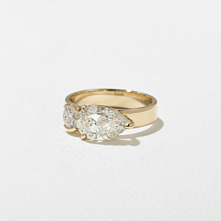 Shown here with an approximately 1.90ct G/H color, VS+ lab-grown pear-cut diamond and an approximately 0.35ct G/H color, VS+ lab-grown round diamond. Band measures 4mm wide.