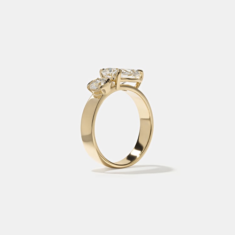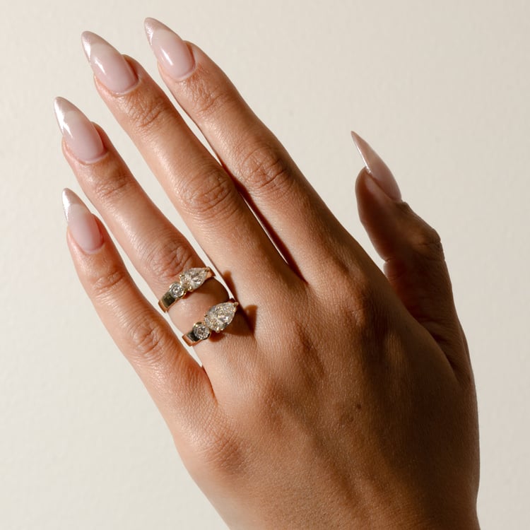 When plans go awry, Henri Grand steps in with an even more extravagant solution. She has everything that Henri offers: an east-west pear diamond accented by a bezel-set round, but with added brilliance. The bold big sister you've always wanted—Henri Grand is there when you need her most.