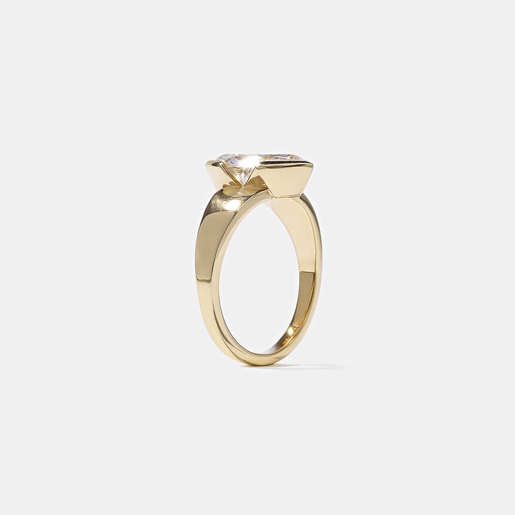 One look at this bold and beautiful ring and it'll never leave your mind. This one-of-a-kind Lou features a bold half-bezel that cradles a beautifully brilliant marquise-cut center.
