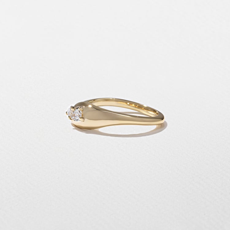 A shapeshifting ring of gold, dotted in diamond dewdrops. Perfect as an everyday stacker or a unique embrace to any engagement ring. Shown in 14k yellow gold. Lab-grown pear and marquise diamonds are F/VS+ quality, 0.21tcw.