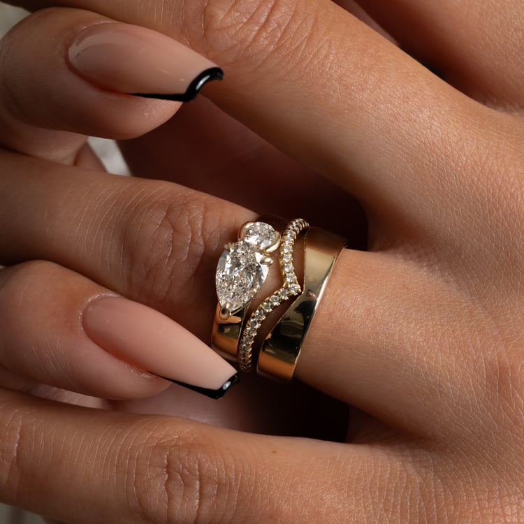 Our beloved Notch is (literally) a cut above your usual cigar stacking ring. With a carefully designed notch built into the design of the band, it sits perfectly flush against our solitaire and multi-stone engagement rings, offering that bold glint of gold that accentuates any diamond.