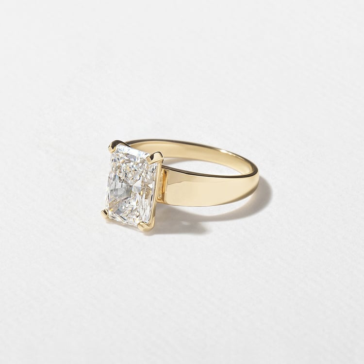 Nova, our most iconic and signature design, is reimagined here with a stunning Radiant diamond — a timeless cut that elongates and dazzles with every turn of the hand. The center stone’s graceful shape is framed by a bold gold band. Elegant, modern, and endlessly captivating, this ring is more than an engagement piece — it’s a statement of love that’s as unique as the person who wears it.