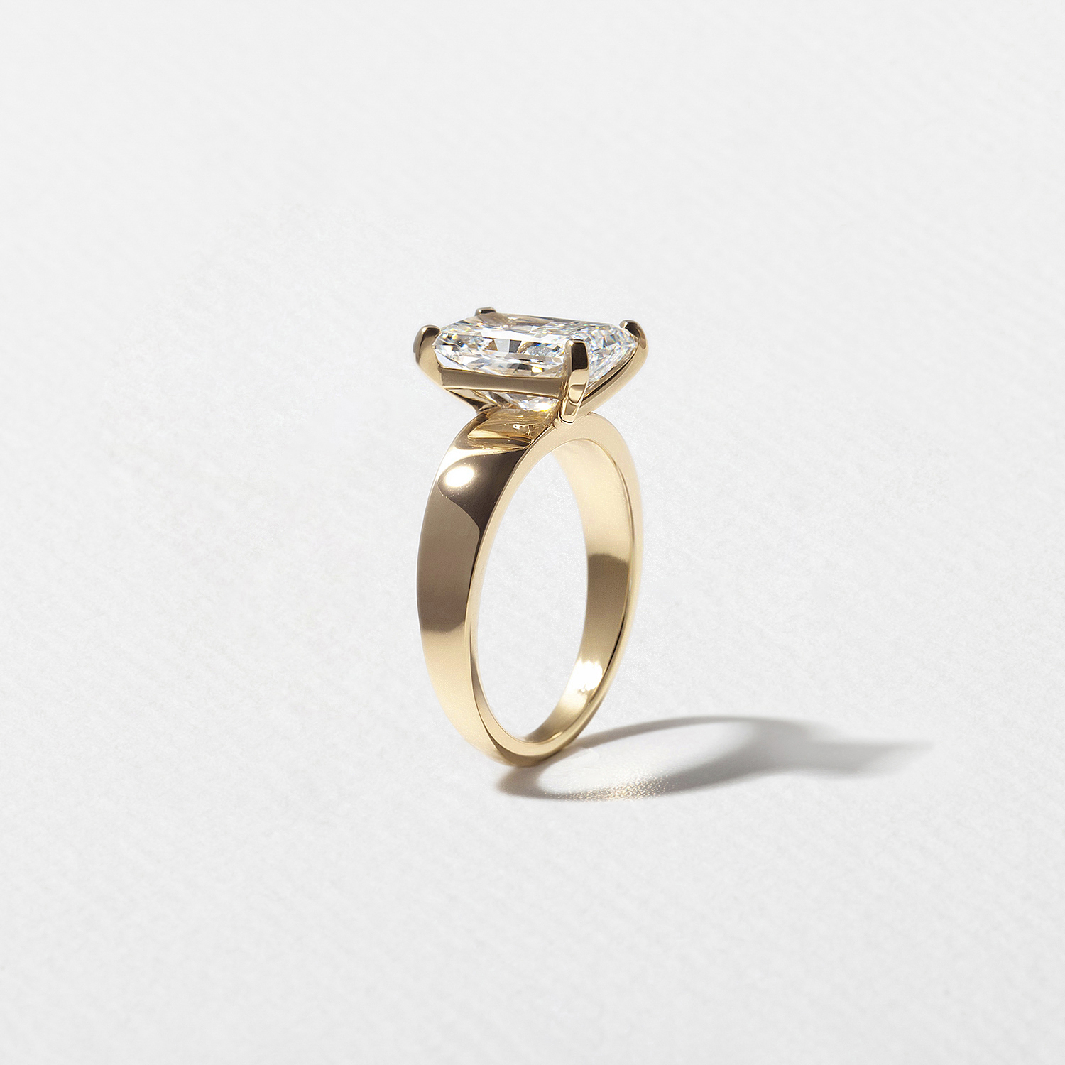 This one-of-a-kind is set with a 3.10ct E/VVS2 lab-grown Radiant-Cut diamond. Band measures 5.20mm at its widest.