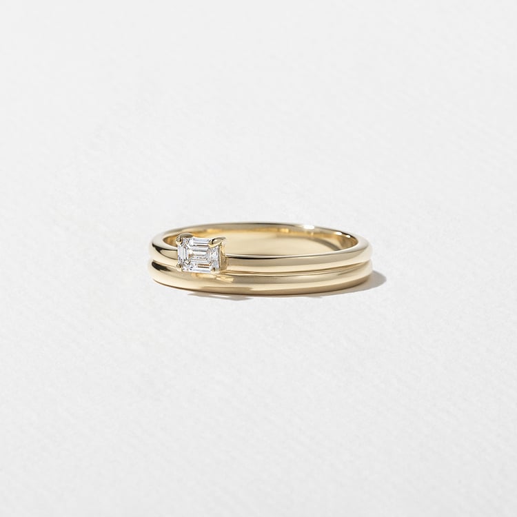 Set with an approximately 0.20ct G/H VS+ emerald-cut lab-grown diamond.
