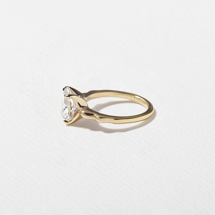 This one-of-a-kind piece features a 2.10ct E/VVS2 lab-grown cushion-cut diamond, handcrafted and sized just for you.