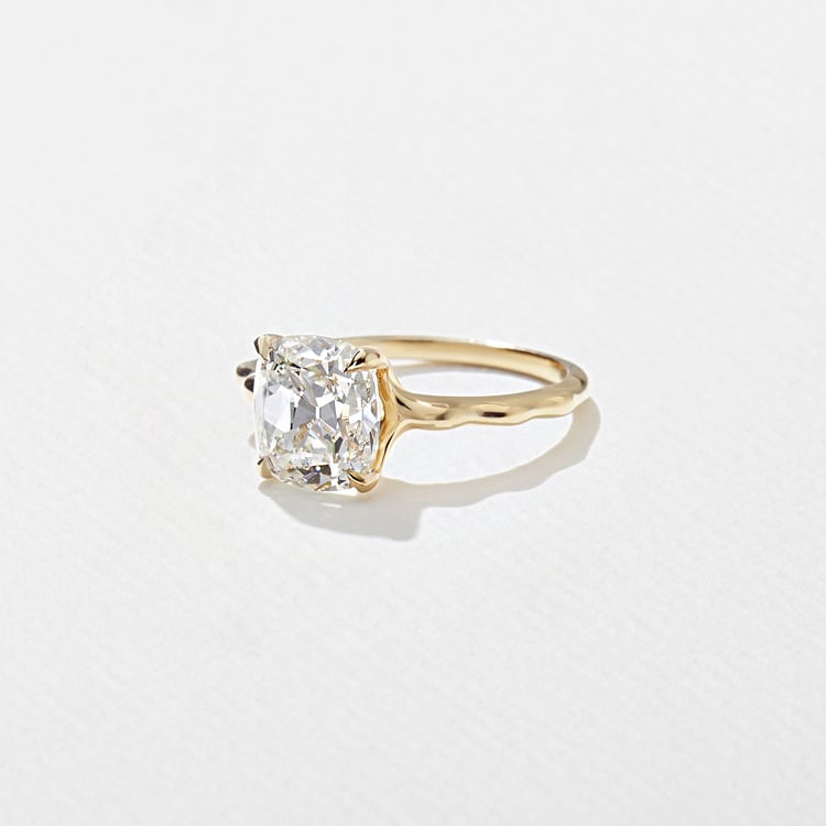 This one-of-a-kind 14k yellow gold ring features a GIA certified 2.91ct H/VS1 lab-grown antique cushion-cut diamond. Sized to order.