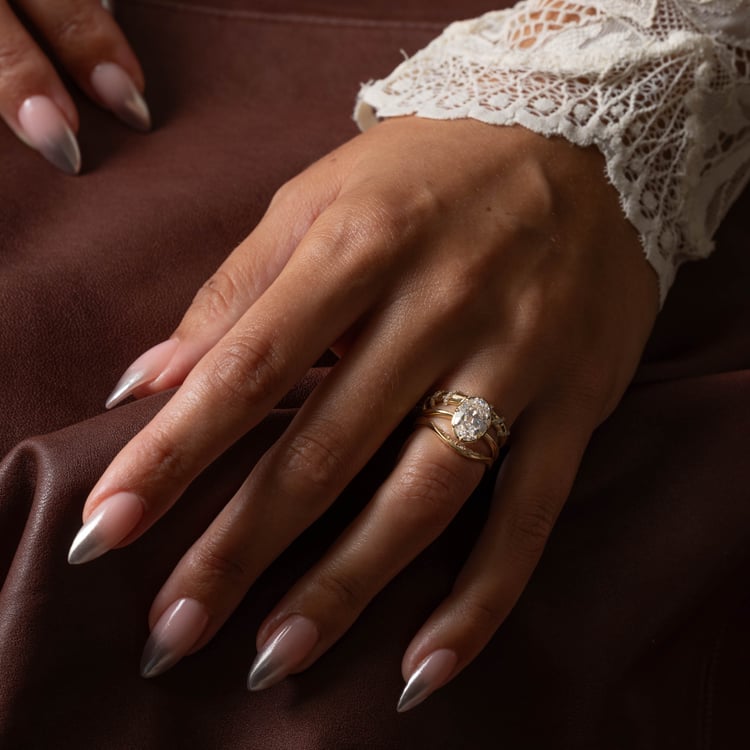Drawn to dainty details, Iris stands confident in her divine femininity, featuring a beautifully clean profile view that is elevated and elegant.
