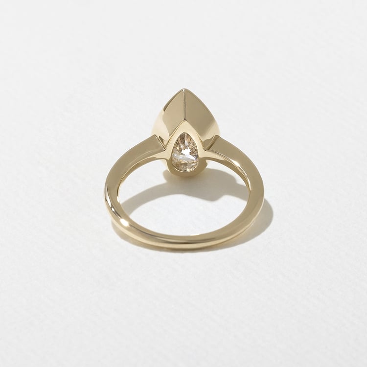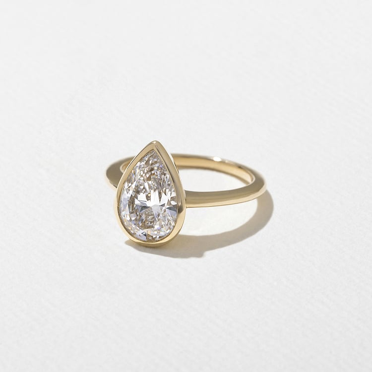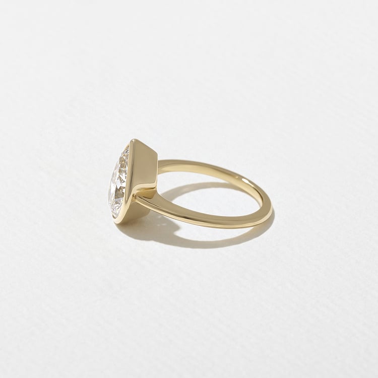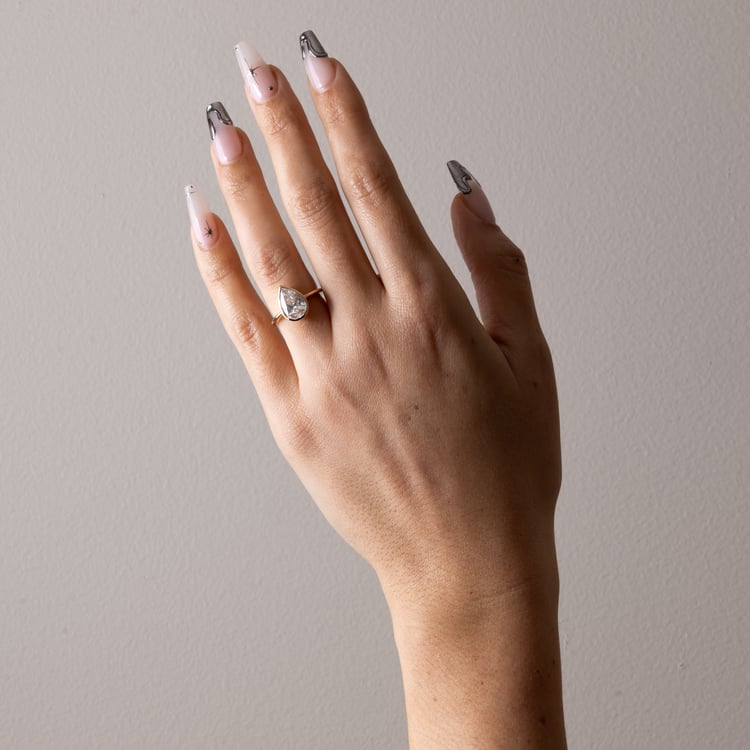 Your Bailey can be set with an Pear-cut diamond between 0.90ct and 6.0ct. Not sure what size is right for you? Select your diamond and order a resin print of your ring to try on at home.
