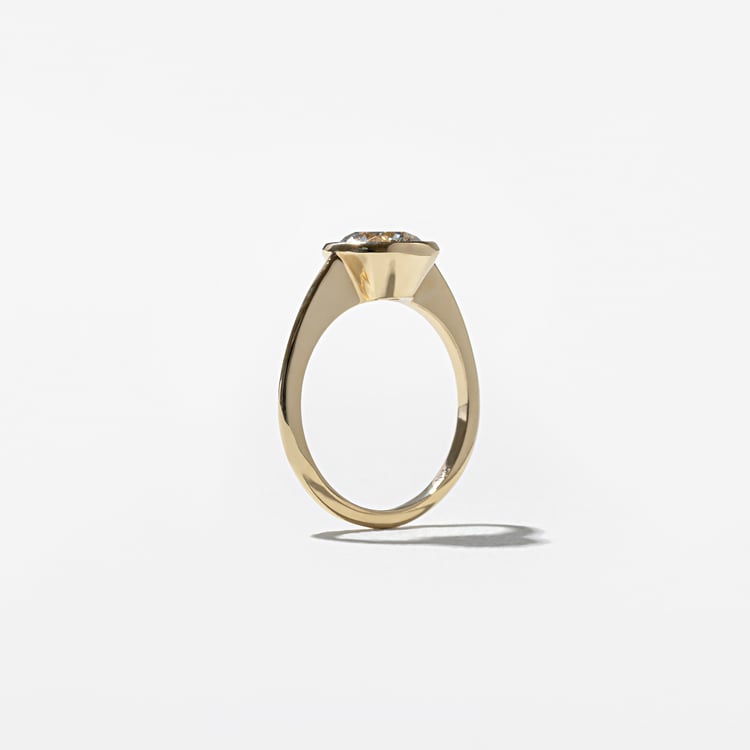 Her handwriting’s neat and her inbox is at zero, but Bailey doesn’t claim to be a perfectionist, she was just born this way. A clean, round diamond is delicately framed in a modern bezel setting that creates a striking contrast on the hand—especially when layered with other rings. As illuminating as the full moon against the night sky, Bailey is breathtaking.