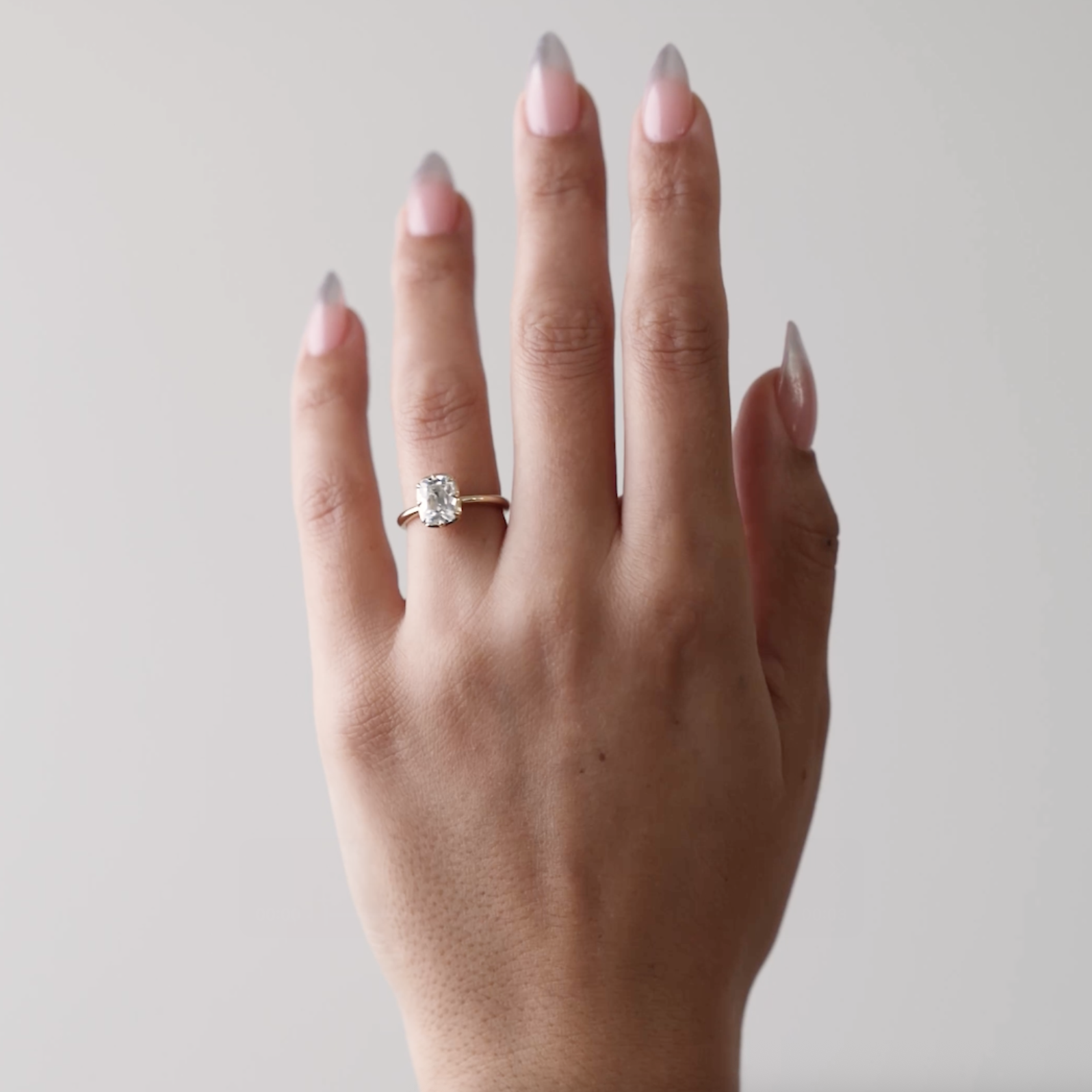 Shown here with an approximately 1.86ct G/H color, VS+ lab-grown antique cushion-cut diamond.