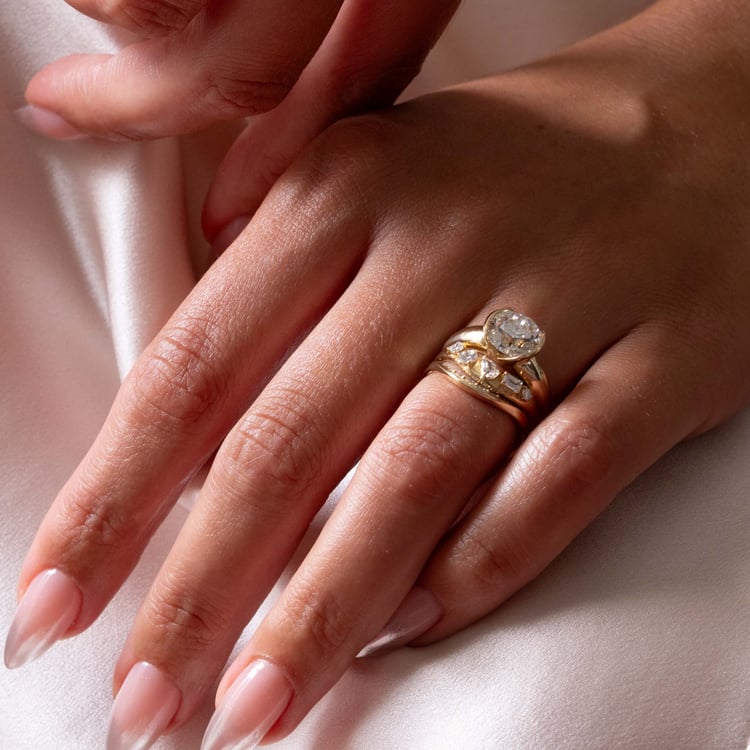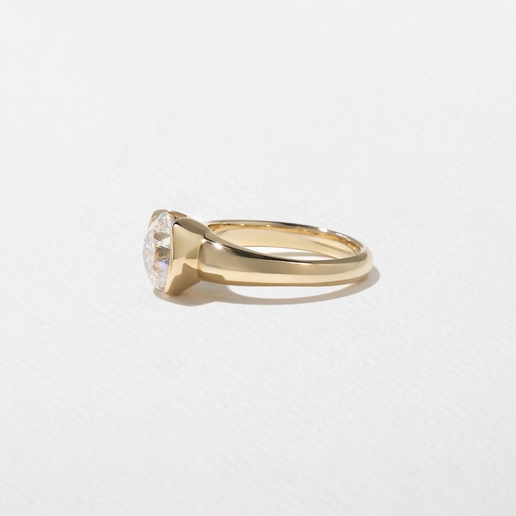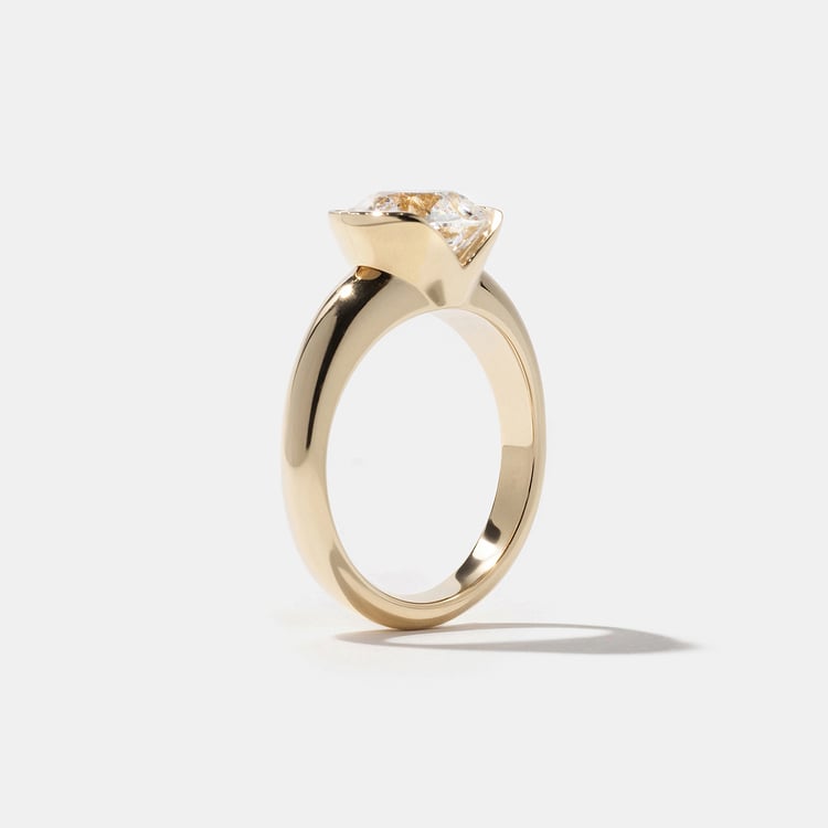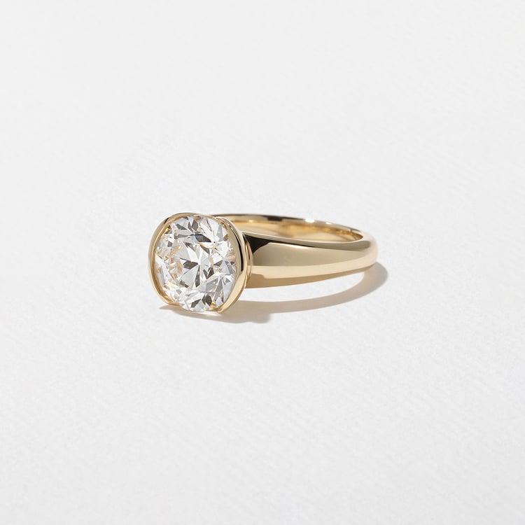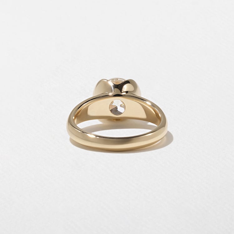 Esme might be the only one not freaking out about price of gold. She’s an old soul and she knows that good design will stand the test of time and is certainly worth its weight in—you guessed it—gold. With her bold, bubbly band and strong half-bezel, one glance is all it’ll take for you to fall fully in love. At her center sits an antique-cut round diamond that sparkles quietly, but fiercely.