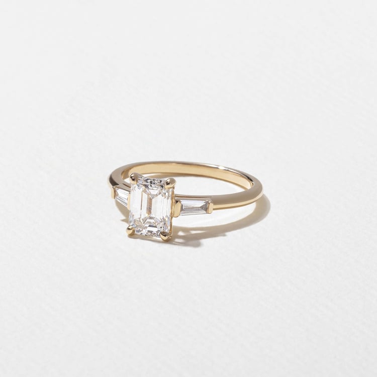 Shown with a 1.28ct H/VS2 lab-grown emerald-cut diamond and 0.20ctw lab-grown tapered baguette diamonds.