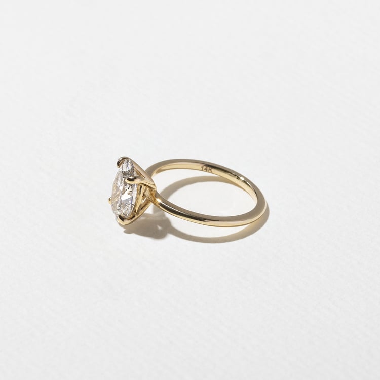 Grace is the type of minimalist who knows how to spark joy without having to clean any closets. That said, her closets are very, very clean. This classic 4-prong ring has the low-key elegance of wearing kitten heels with jeans. The elongated oval diamond is simple yet stunning, a shapeshifter who can go casual or black tie, depending on where the night takes her.