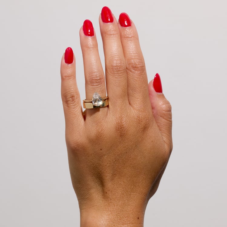 Your Grace can be set with a Pear-Cut diamond between 0.90ct and 6.0ct. Not sure what size is right for you? Select your diamond and order a resin print of your ring to try on at home.