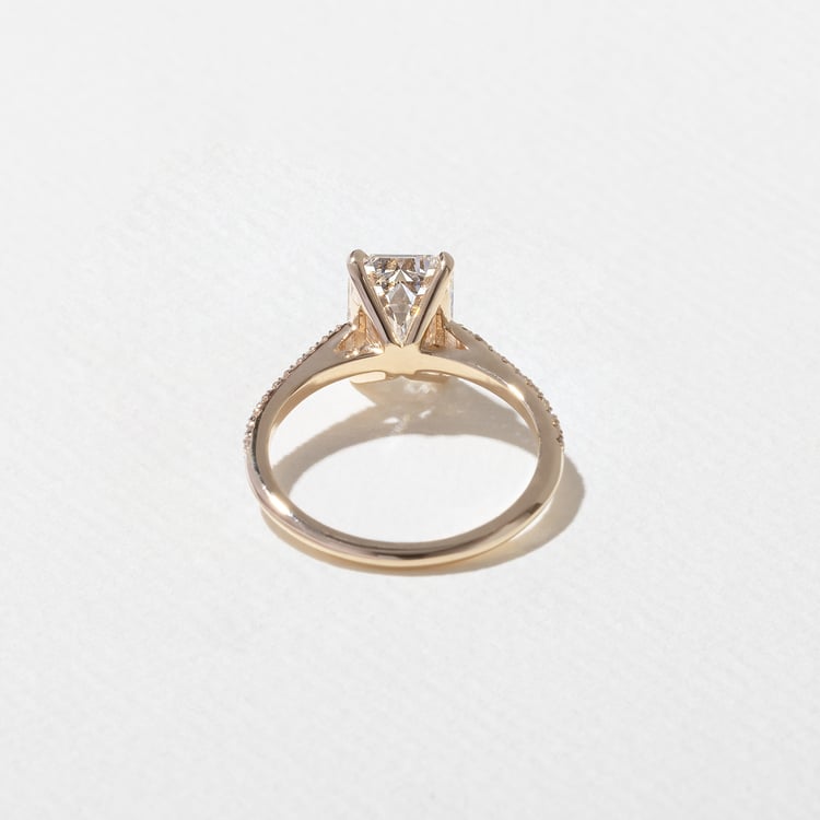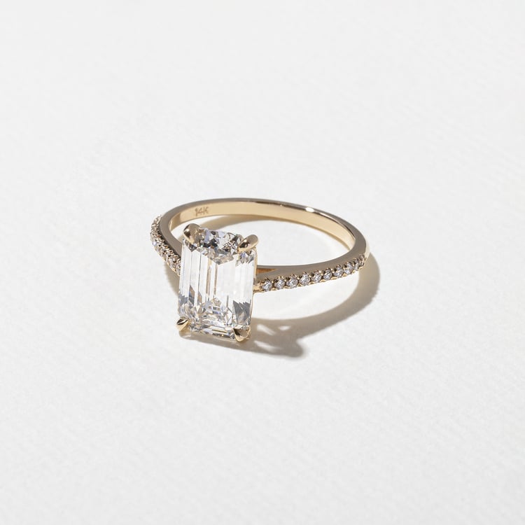 Shown with a 2.45ct H/SI1 lab-grown emerald-cut diamond and 0.15ctw lab-grown pave diamonds.