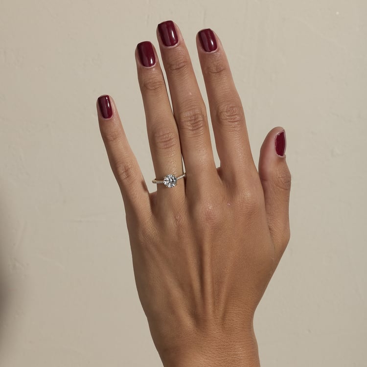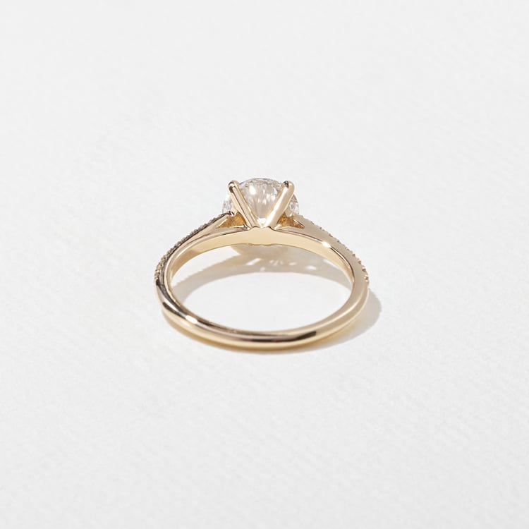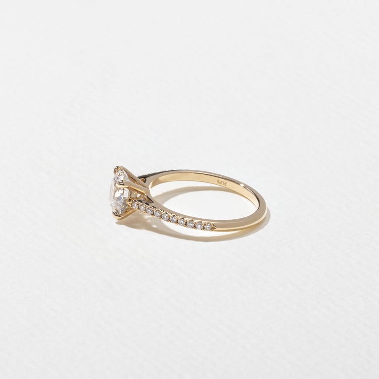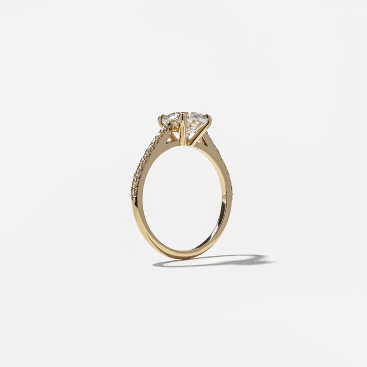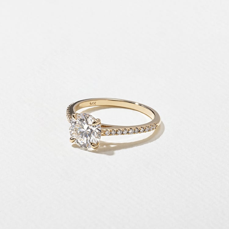Shown with a 1.47ct H/VS2 lab-grown round diamond and 0.14ctw lab-grown pave diamonds.