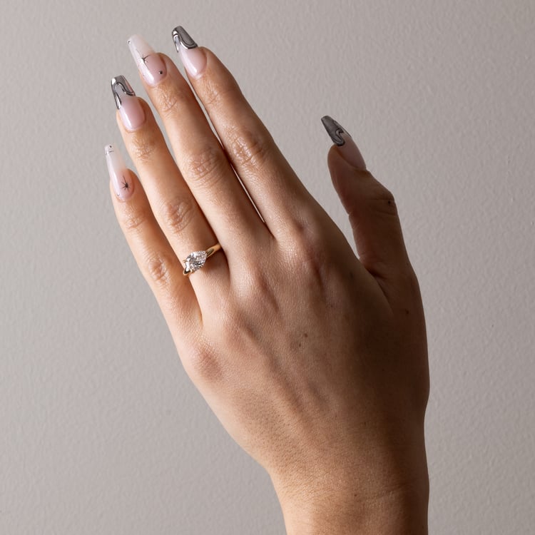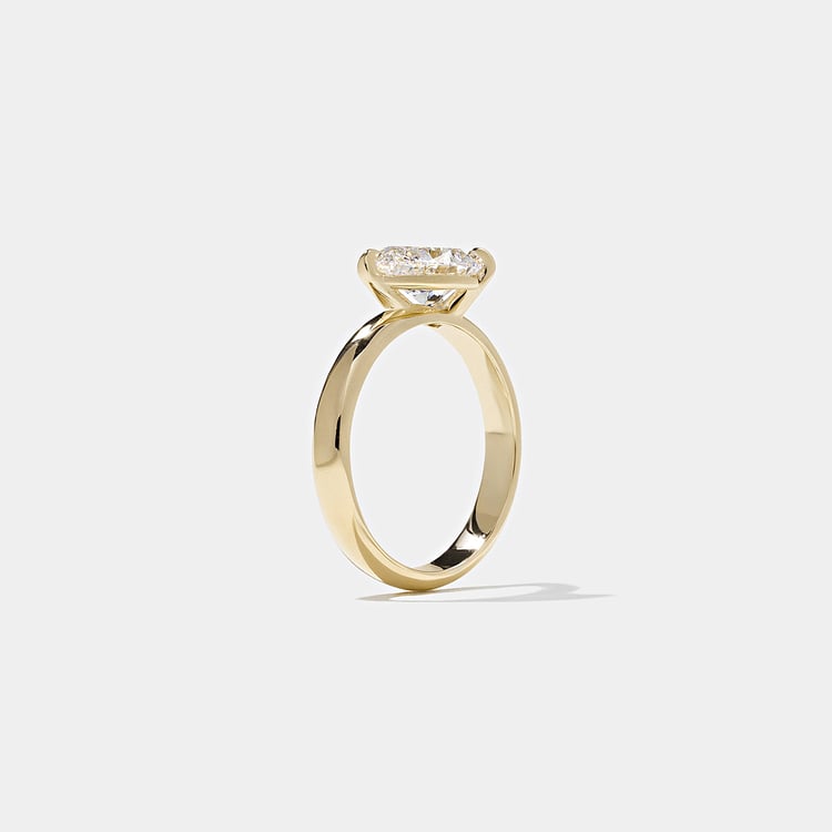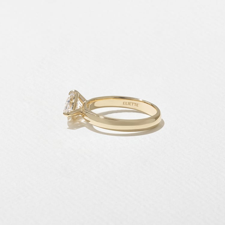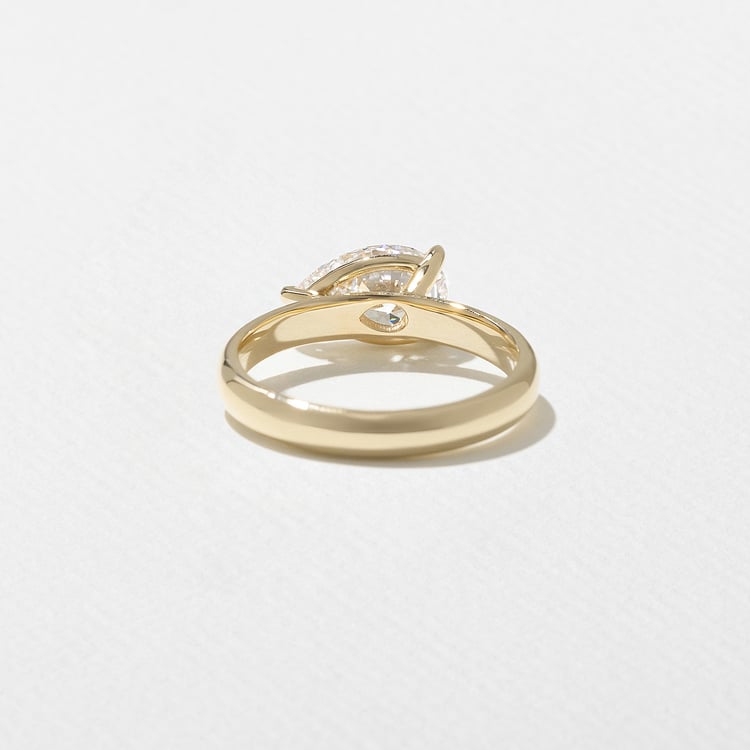 Your James can be set with a Pear-cut diamond between 0.90ct and 6.0ct. Not sure what size is right for you? Select your diamond and order a resin print of your ring to try on at home.