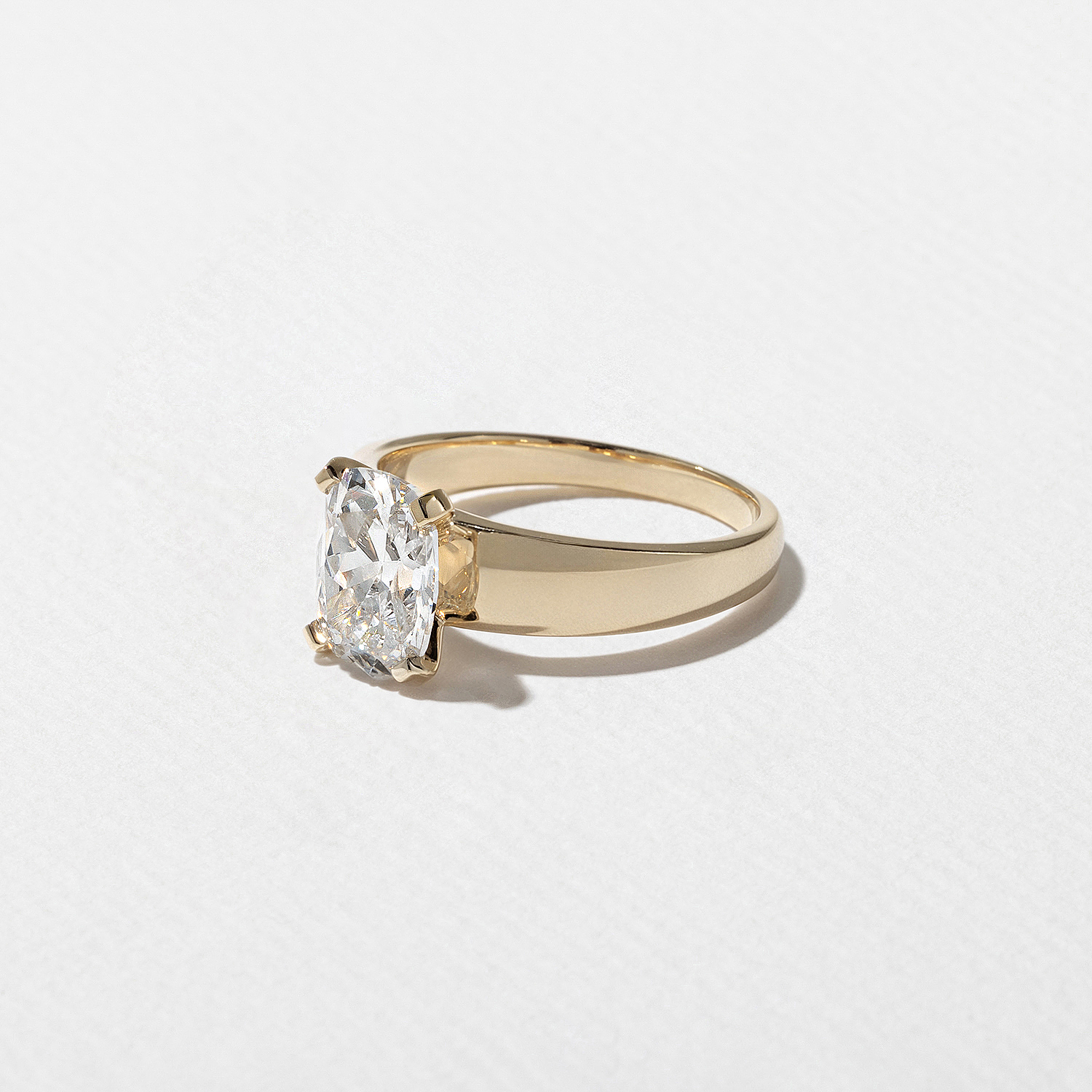 Curtains up! Nova is always ready for her spotlight. With a gorgeously faceted antique-style cushion-cut diamond at her center, Nova’s sparkle is soft yet undeniable against her bold gold band.