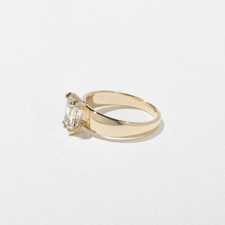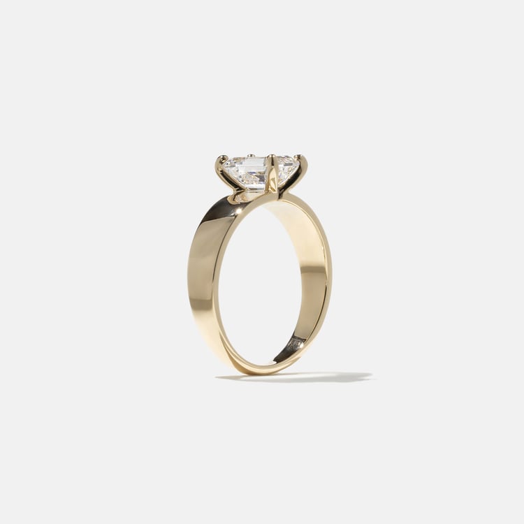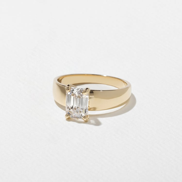 Your Nova can be set with an Emerald-Cut diamond between 0.90ct and 6.0ct. Not sure what size is right for you? Select your diamond and order a resin print of your ring to try on at home.