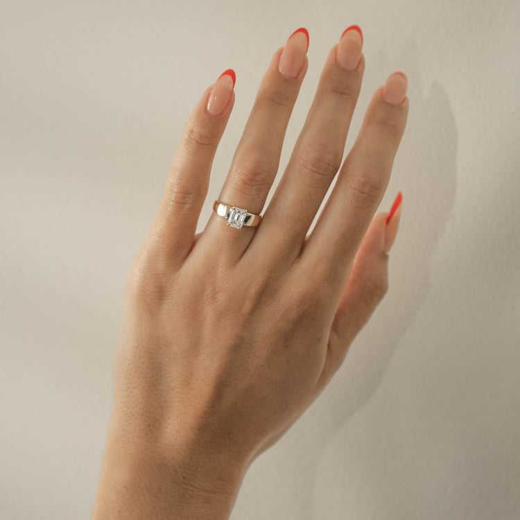 Shown with a 1.25ct F/VS1 lab-grown Emerald-Cut. Band measures 5.20mm at its widest.