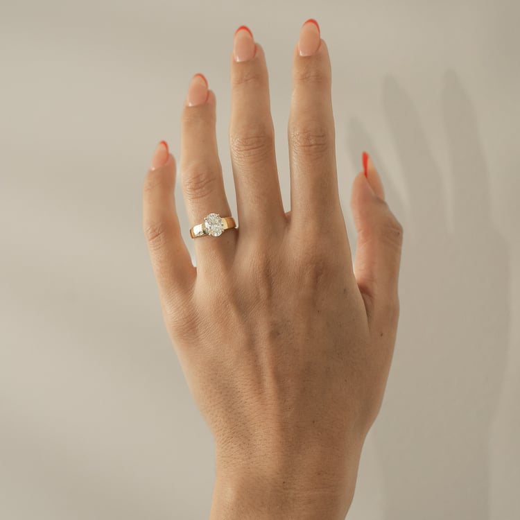 Shown with a 1.75ct F/VS1 lab-grown Oval diamond. Band measures 5.20mm at its widest.