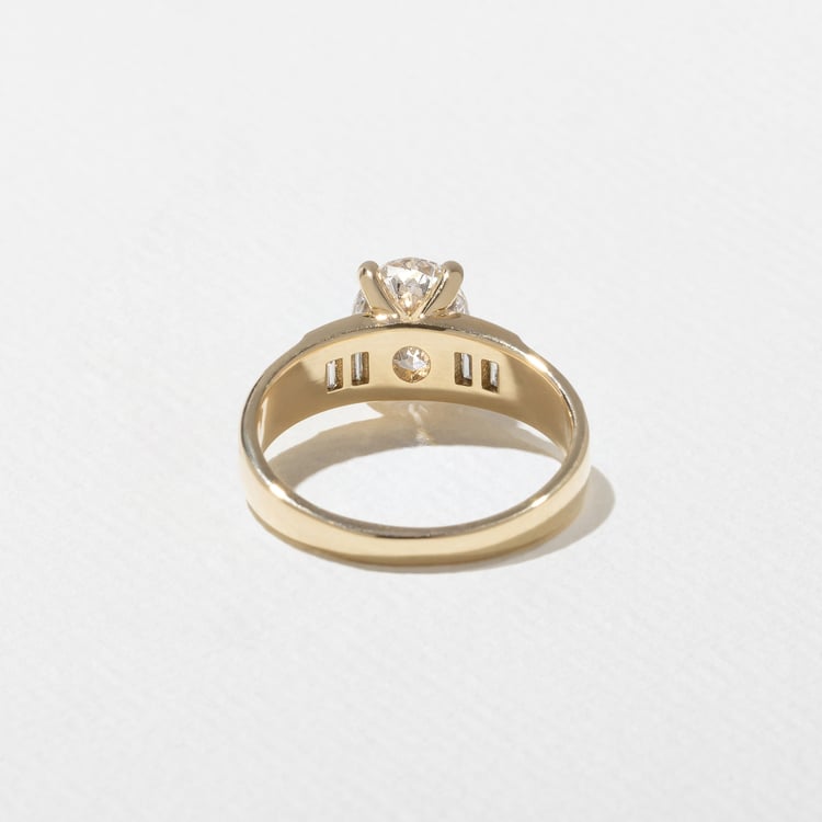 Shown with a 1.53ct F/VS2 lab-grown oval diamond and 0.32ct lab-grown baguette diamonds. Band measures 5.20mm at its widest.