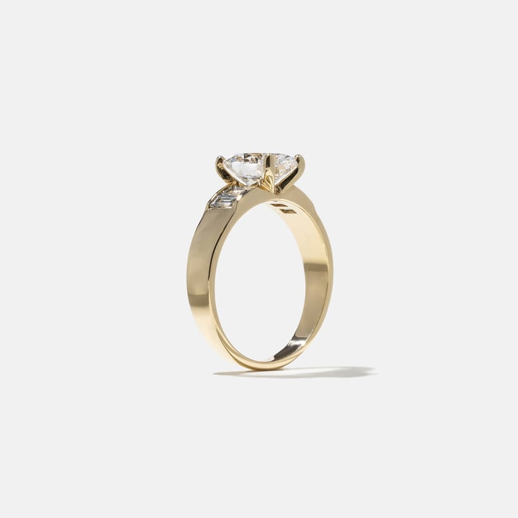 Sorry, Nova can’t make it to the phone right now because she’s painting the town red. An unapologetic extrovert with diva tendencies, she knows who she is and she owns it. If the dramatic oval solitaire is the solo act, her vertical side baguettes are the stage curtains drawn back. The spotlight is always on Nova.