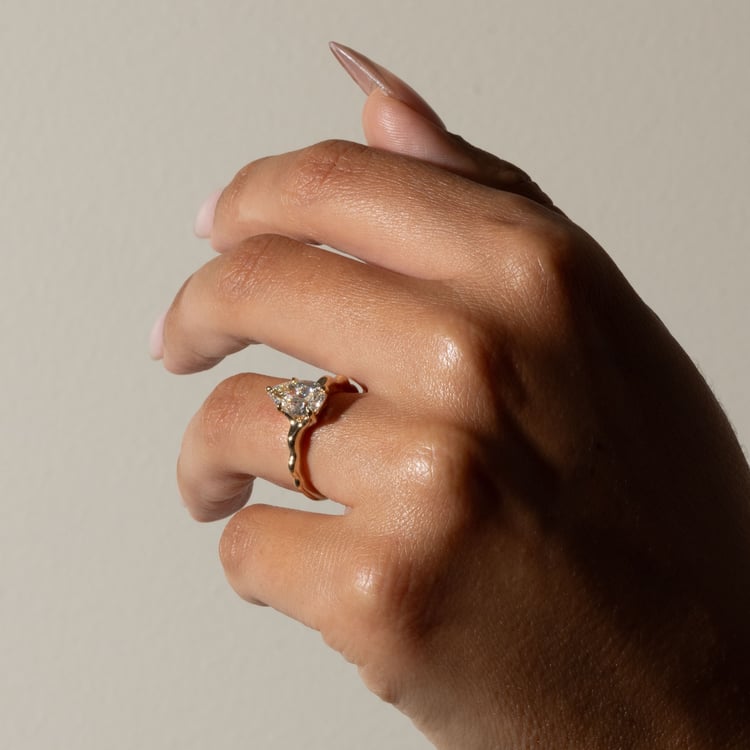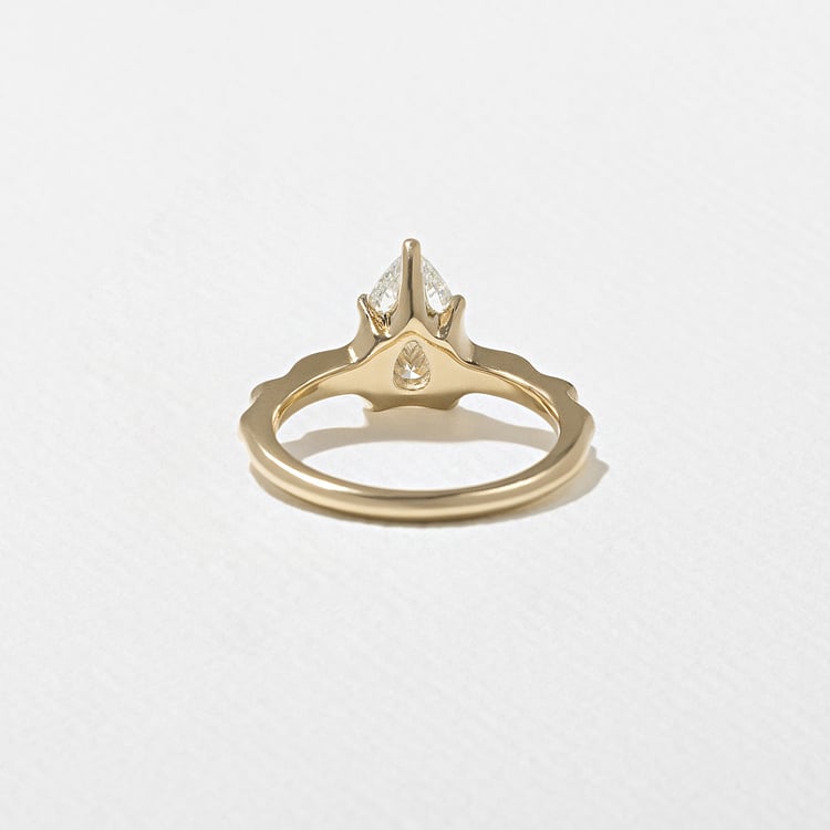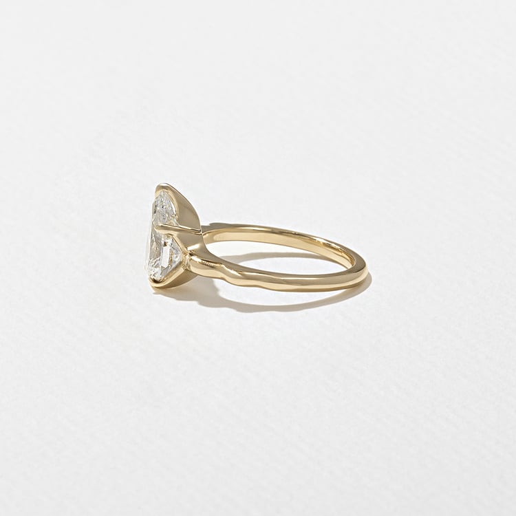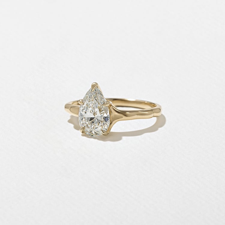 Your Sloan can be set with a pear-cut diamond between 0.90ct and 6.0ct. Not sure what size is right for you? Select your diamond and order a resin print of your ring to try on at home.