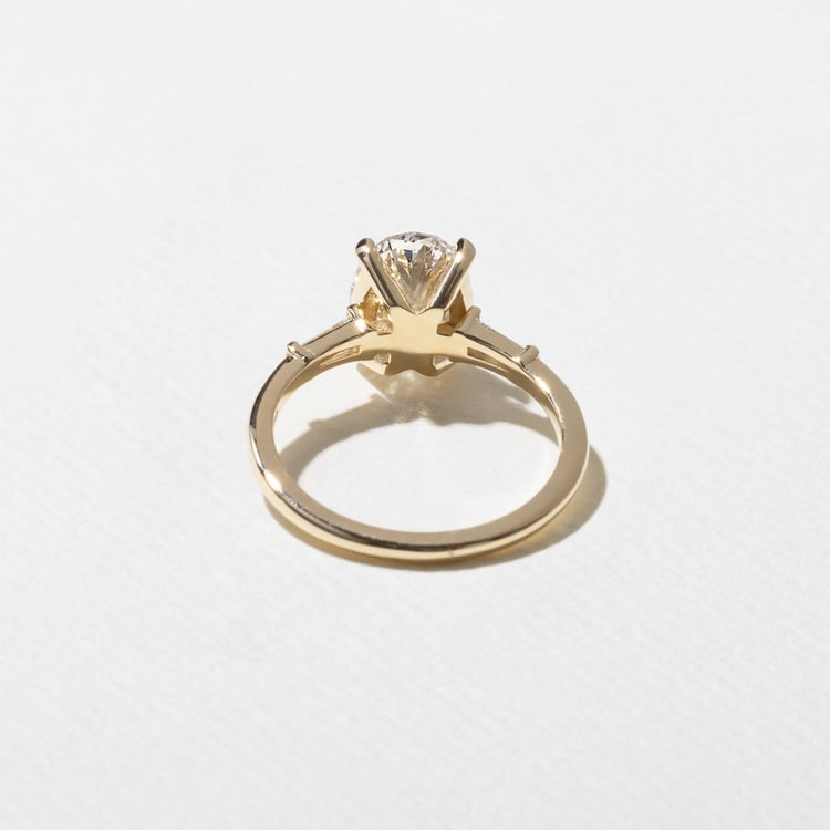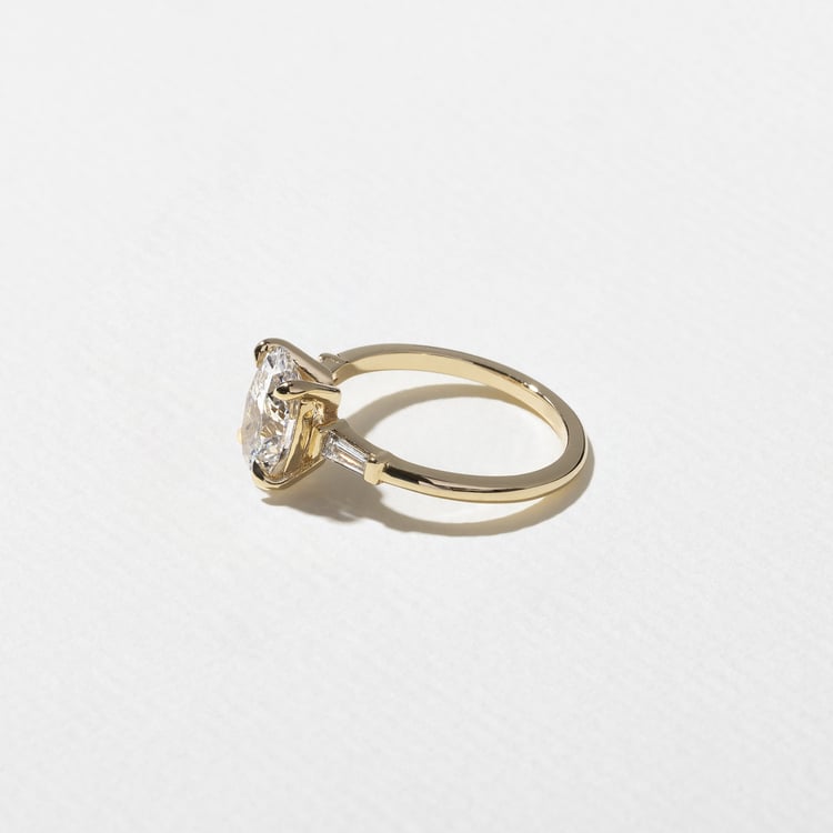Shown with a 2.08ct G/VS2 lab-grown oval diamond and 0.20ctw lab-grown tapered baguette diamonds.