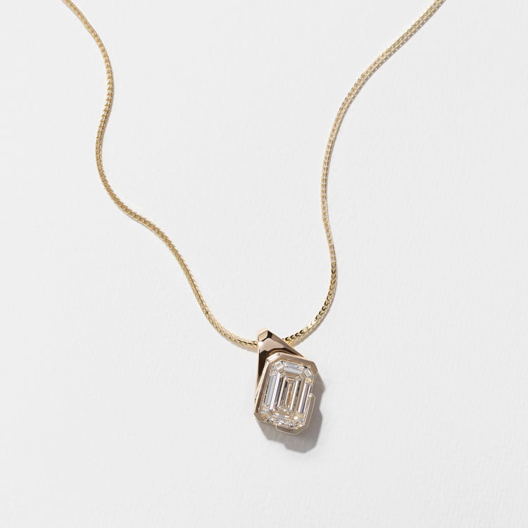 Picture yourself on the beach of your dreams, nestled in a crescent-shaped bay with the waves at your feet and the sun gleaming across the horizon line. That blissful feeling is what brought our Cove necklace to life, designed to stand out with its brilliant-cut round diamond cradled in liquid gold.