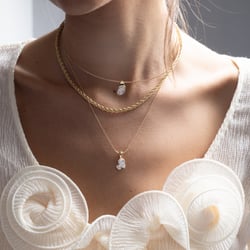 Pendant measures approximately 14mm by 9mm (including bail). Set with an approximately 1.50ct H/VS+ lab-grown pear-cut diamond and an approximately 0.30ct oval-cut diamond on a 14k gold franco 18” chain.