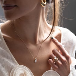 For those looking for the perfect punctuation to any necklace stack, look no further. Set in a striking asymmetric half bezel design, Rhodes carries herself with nothing but strength and sparkle.