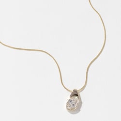 Pendant measures approximately 15mm by 8mm. Set with an approximately 1.70ct H/VS+ lab-grown oval-cut diamond on a 14k gold franco 18” chain.