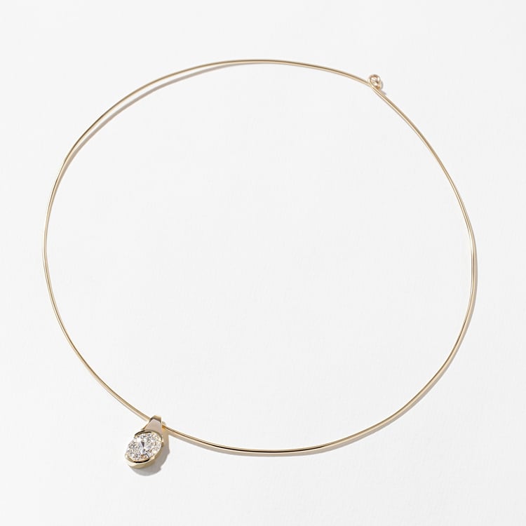 For those looking for the perfect punctuation to any necklace stack, look no further. Set in a striking asymmetric half bezel design, Rhodes carries herself with nothing but strength and sparkle.